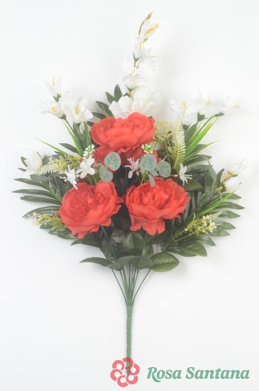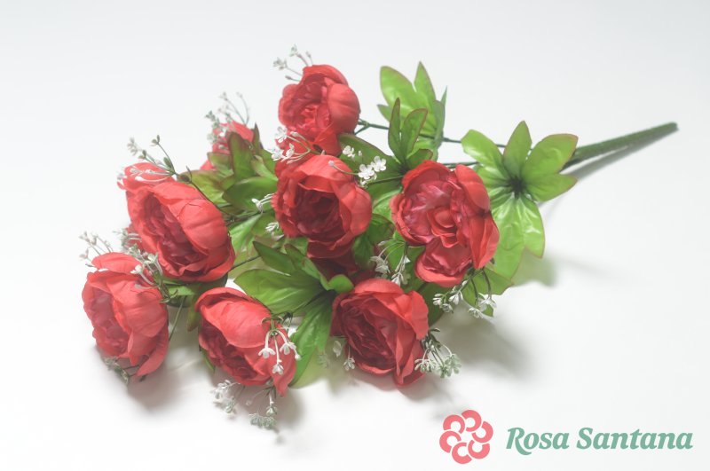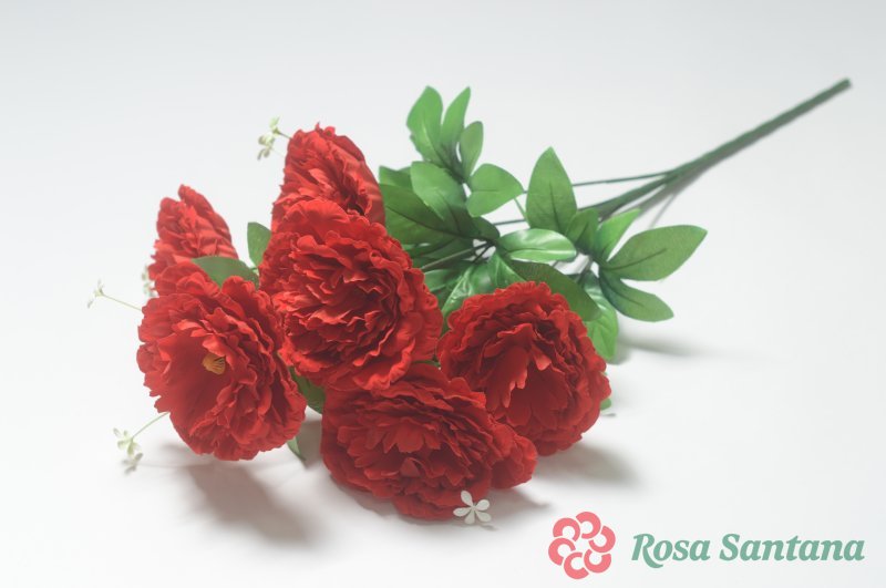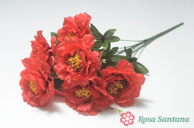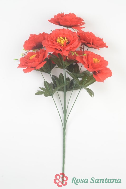Ветка в букете пион 7 голов (1010237) красный